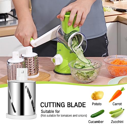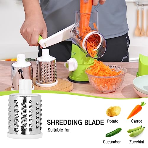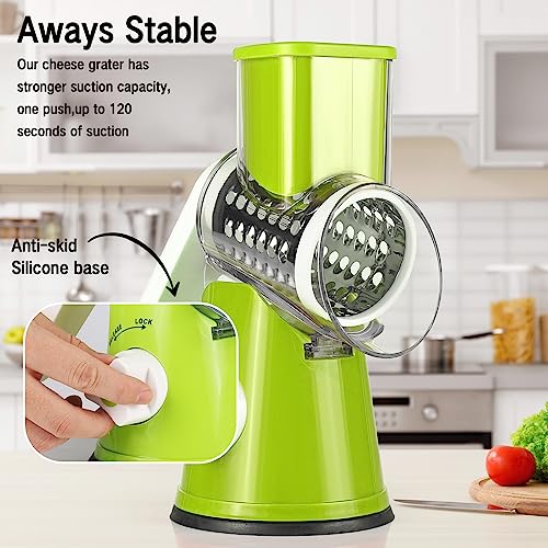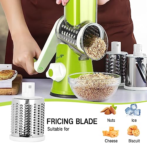 Dreamhigh - Dreamhigh Cheese Grater with Crank, Vegetable Cutter, 3 Stainless Steel Interchangeable Drum Blades, Manual Drum Grater, Vegetable Slicer, Strong Suction Effect, Ideal for Cucumbers, Cheese, Nuts