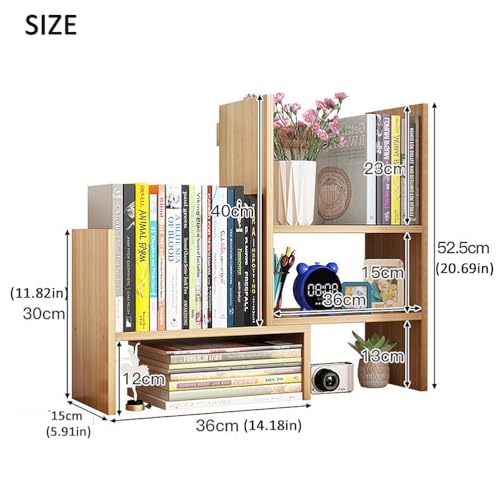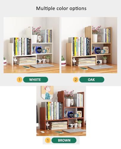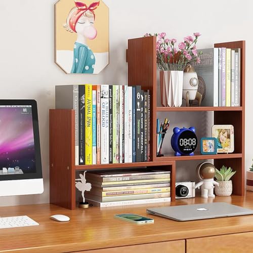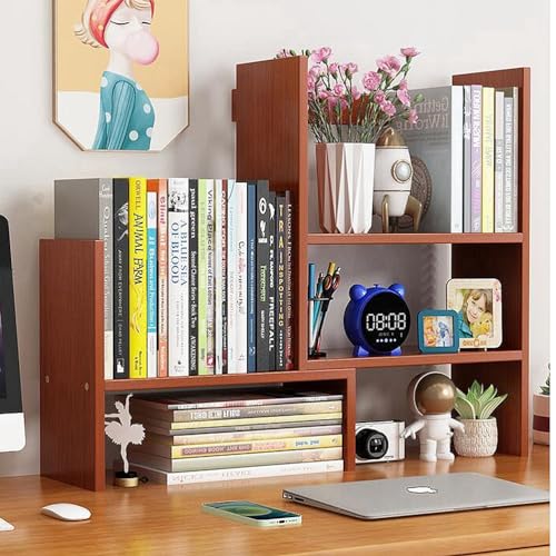Dreamhousey - Desktop Retractable Bookshelf Shelf, Office Simple Multi-Layer Student Desk Bookshelf Storage Rack Combination Bookcase Desktop File Organizer Rack (Brown)