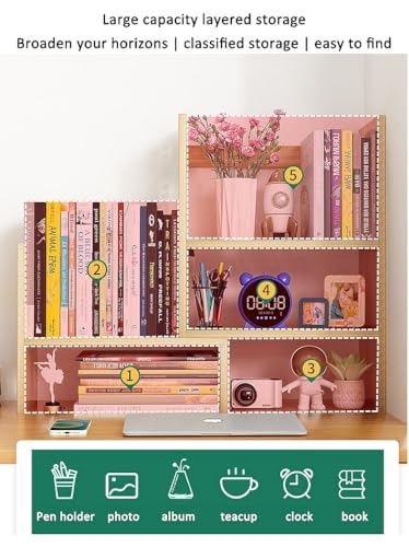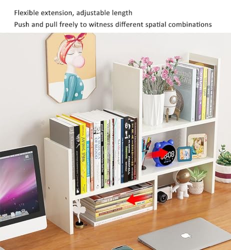 - 【LARGE CAPACITY】This bookshelf can be extended and the extension length is 14.18-28.3 inches, provide enough space to meet your daily needs and replacement. And there have 5 division grids for better classification and storage of various objects, keep your desktop clean and neat.