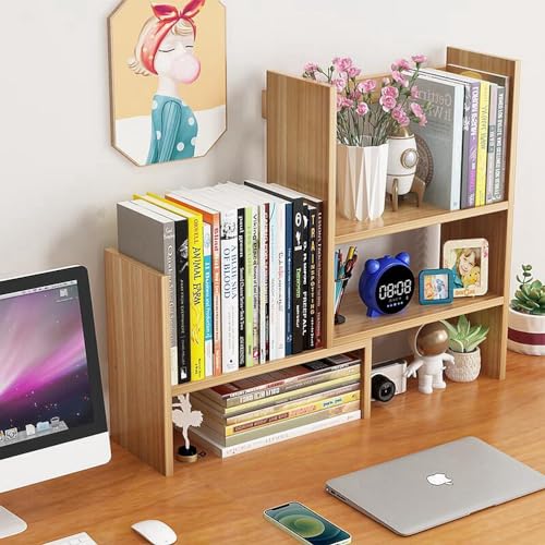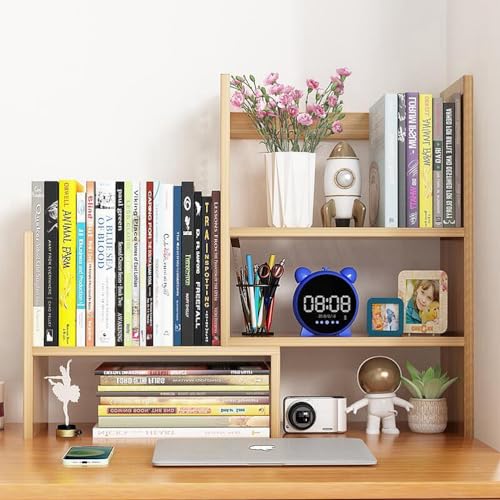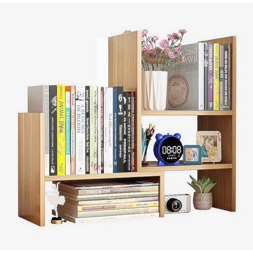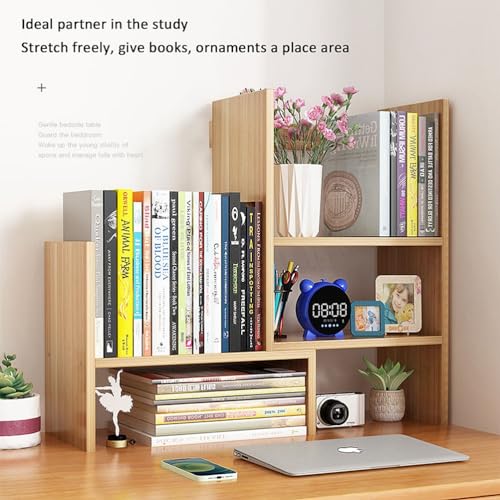 Dreamhousey - Desktop Retractable Bookshelf Shelf, Office Simple Multi-Layer Student Desk Bookshelf Storage Rack Combination Bookcase Desktop File Organizer Rack (Oak)