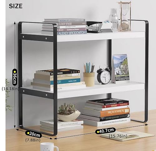 - 【LARGE CAPACITY】The size of this bookshelf is 15.76 x 7.88x 14.18 inches, provide enough space to meet your daily needs and replacement. And there are 2 separate layers for better classification and storage of various objects, keep your desktop clean and neat.
