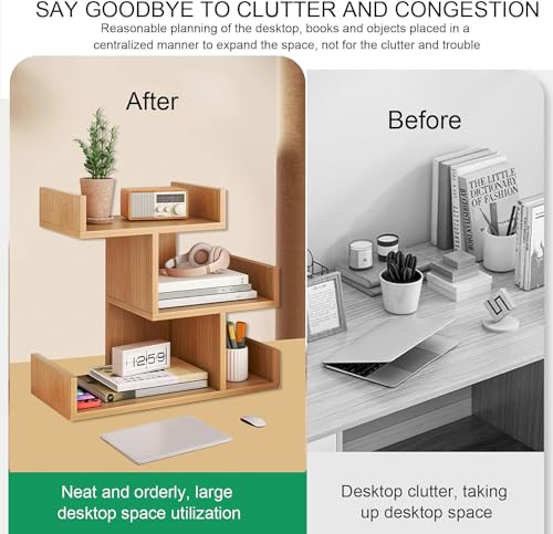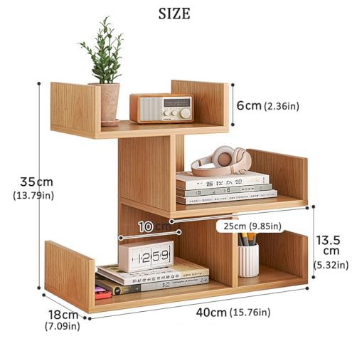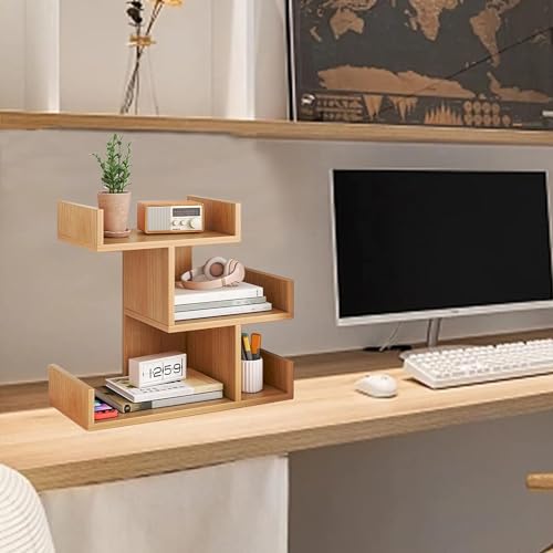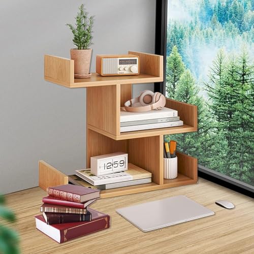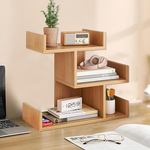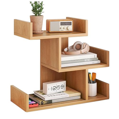 Dreamhousey - Multi-Layer Simple Small Bookshelf for Office Desk Storage, Modern and Minimalist Bookshelf for Students, Bedroom 3-Tier Large Space Cosmetic Storage Rack (Oak)
