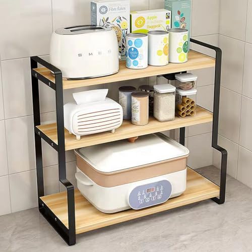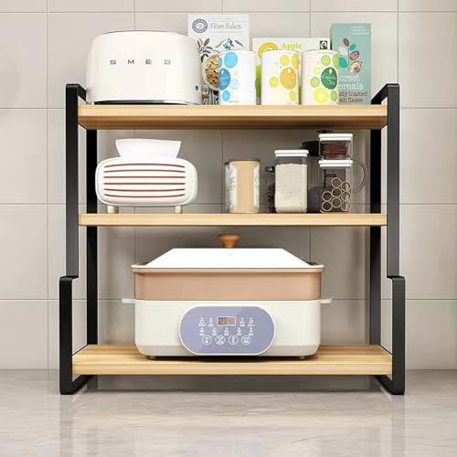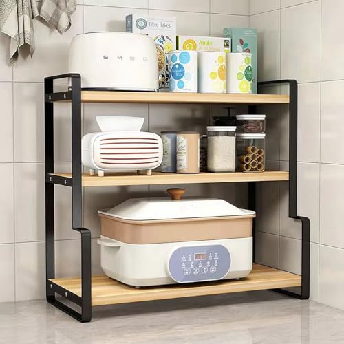 Dreamhousey - رف مكتبي من الخشب الصلب للطلاب من دريم هاوس، رف تخزين توابل للمطبخ، مكتب كمبيوتر للدراسة من 3 طبقات، رف كتب منظم لتخزين الملفات (اسود + بلوط، 3 طبقات)