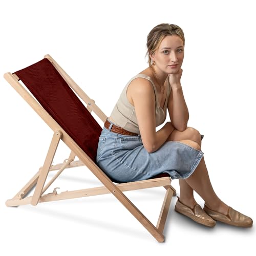 DreamRoots - كرسي خشب قابل للطي بقماش قطيفة مضلع يتحمل حتى وزن حتى 130 كجم مع إمكانية تعديل درجة الميل بـ3 مستويات للشاطىء والحديقة من دريم روتس