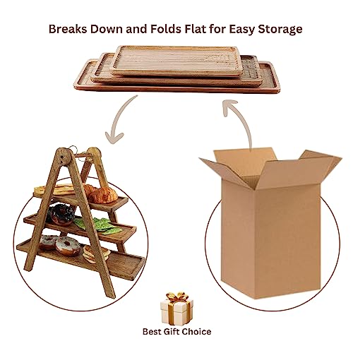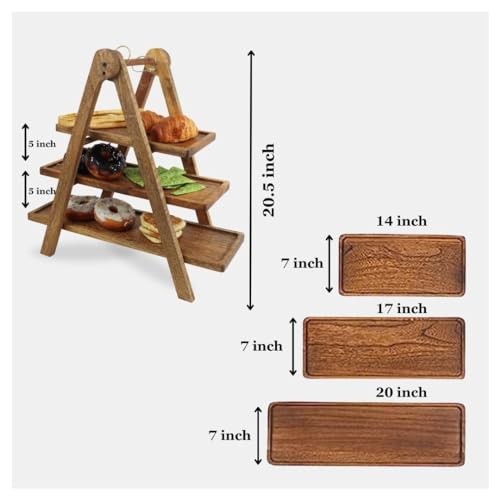 DREAMY WALLS - 3 Tier Serving Tray 20.5" Wood Three Tiered Cake Stand, Cupcake stand Cheese Board Platter Set, Farmhouse Rectangle Serving Platter, Home Party Decor Housewarming Gift