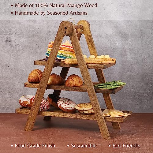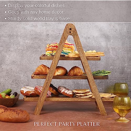 - Versatile: Made of sturdy mango wood use our 3 tier wooden tray as cake stand, dessert stand, cup cake stand for birthday party, cheese board for wine nights, serving trays for snacks & fruit platter