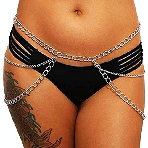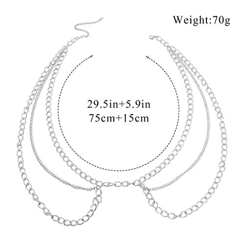 DRESBE - Dresbe Boho Layered Body Chains Metal Belly Waist Chain Charm Body Jewelry Accessories for Women and Girls (Silver)