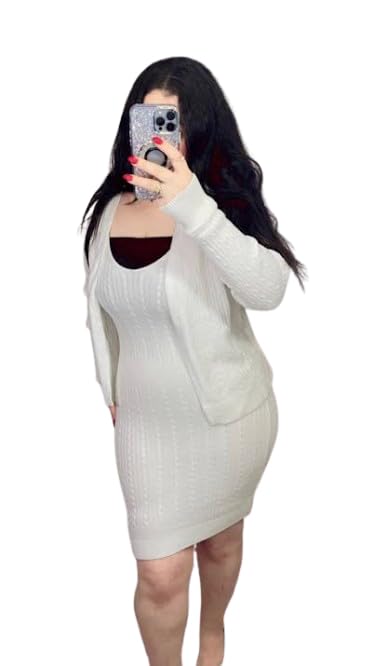 Generic - Dress Set for Women, winter warm Ribbed Knit 2 Piece White Dress and Cardigan, Fitted Style, one size fits S,M,L