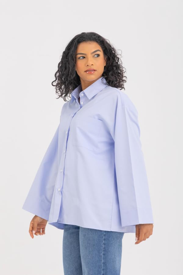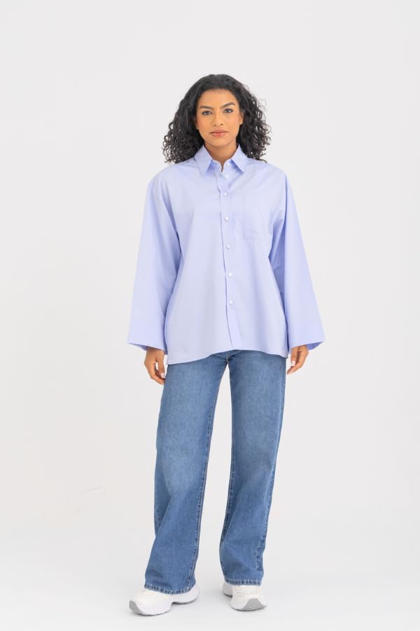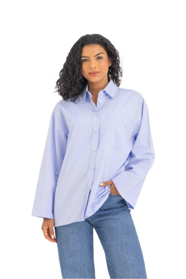 DressCode - قميص نسائي كبير الحجم بأساور عريضة بلون ازرق (عبوة من قطعة واحدة)