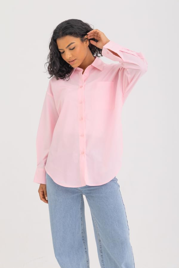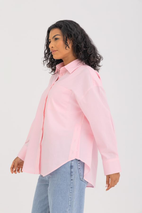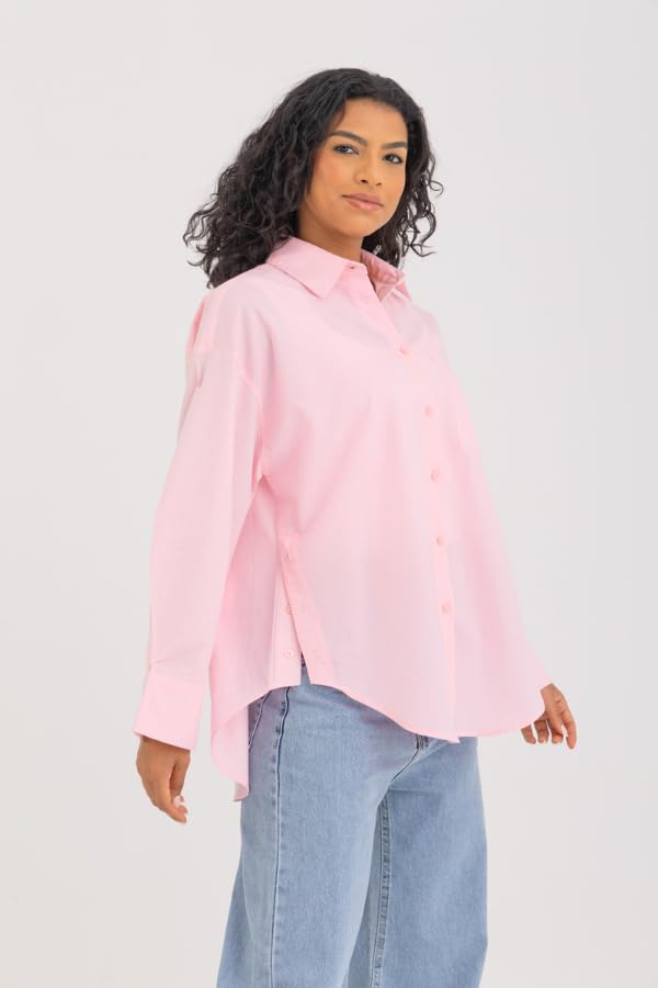 DressCode - DressCode Womens Side Split Buttoned Shirt In Pink Streetwear (pack of 1)