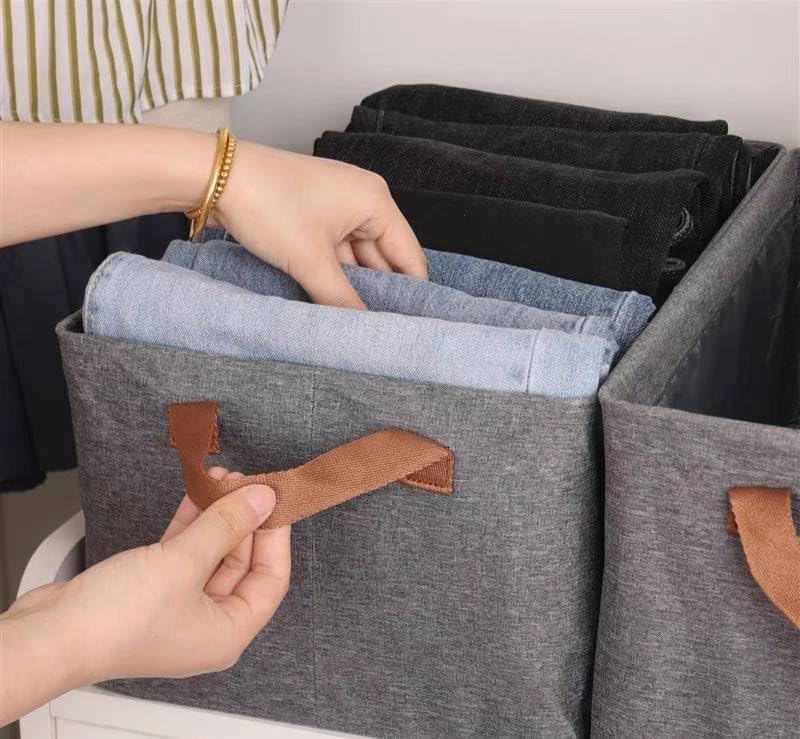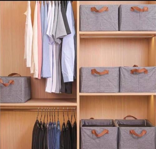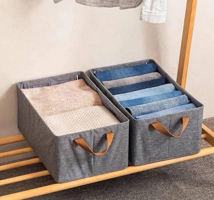 Generic - Dressing Organizer - Grey Linen Fabric Box with Metal Legs and Leather Handles for Clothes Storage and Organization as