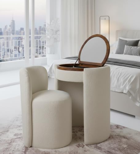 - Compact mirror: includes round mirror with elegant wooden frame that can be folded and concealed inside the table to keep a clean and neat look