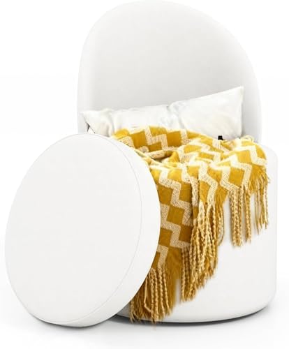 - VERSATILE PLACEMENT: Stylish white finish complements any décor, making it perfect for bedrooms, living rooms, dining rooms, or dressing areas as both functional seating and storage solution