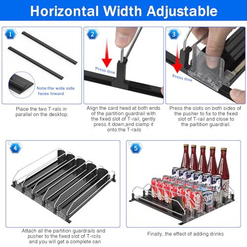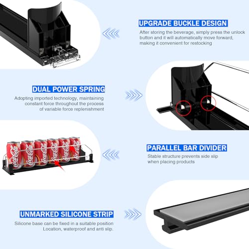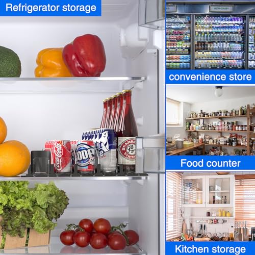- 【تصميم مطور】يتميز منظم العلب للثلاجة بتصميم نابض مدمج ينزلق مشروبك للأمام تلقائيًا. تصميم وظيفة تحديد المواقع، اضغط على لوحة الدفع لقفل أو فتح الدافع، أكثر ملاءمة لتجديد المشروبات. تصميم مقسم قضيب مزدوج، هيكل أكثر استقرارًا، مجموعة المشروبات لن تنزلق جانبيًا. الجزء الخلفي من الدليل مبطن بالسيليكون، والذي على عكس المنتجات الأخرى التي تستخدم لاصق على الوجهين، يوفر ثباتًا أكثر إحكامًا.