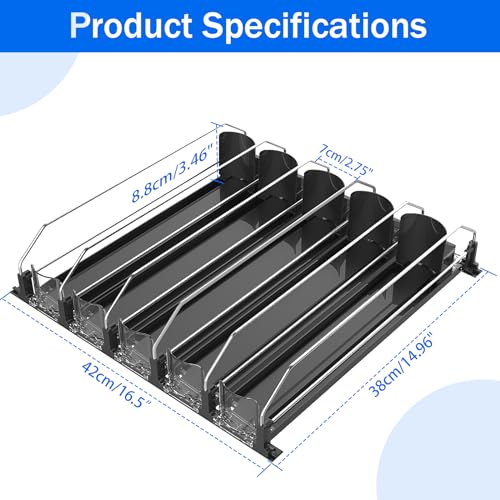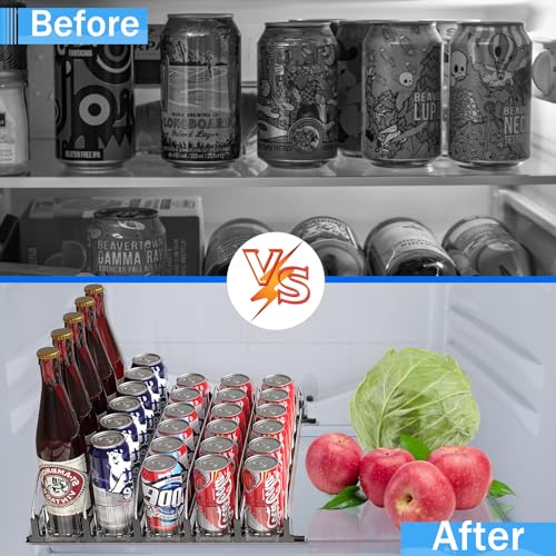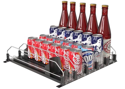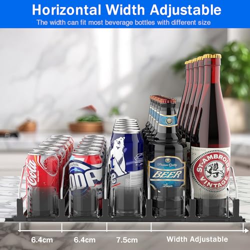 Saikaqon - منظم مشروبات للثلاجة، منظم علب ذاتي الانزلاق للثلاجة، موزع مشروبات بعرض قابل للتعديل، منزلق دفع تلقائي، للصودا، البيرة، البوب، علب تخزين المشروبات الاخرى (14.96 انش - 5 صفوف)