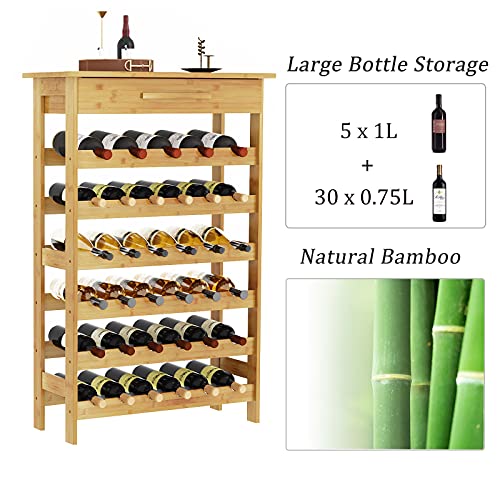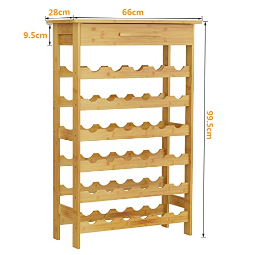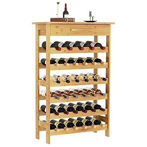 Dripex - Dripex Bamboo Wine Rack with Drawer, 6-Tier 35 Bottles Free Standing Floor Wine Holder Storage Display Shelves for Home, Kitchen, Bar, Wine Cellar, Basement