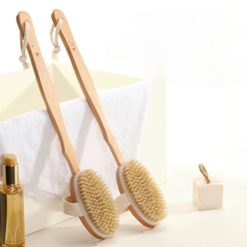 - ✪ DEEP EXFOLIATION FOR DRY BODY - Gently removes dead cells and revealing smooth, glowing skin. ACTIVATES BLOOD CIRCULATION:Unique massage stimulate blood flow and reduce fatigue (use 5 minutes before bathing) ✪ ADVANCED DESIGN: Built-in silicone fork provides targeted massage to areas prone to cellulite and sagging SKIN FRIENDLY MATERIAL: Untreated Natural Wooden Handle + Soft Plant Fiber (Safe for Sensitive Skin). ✪️ FAST RESULTS: smoother skin than 1 use - Ideal for use 3 times a week.