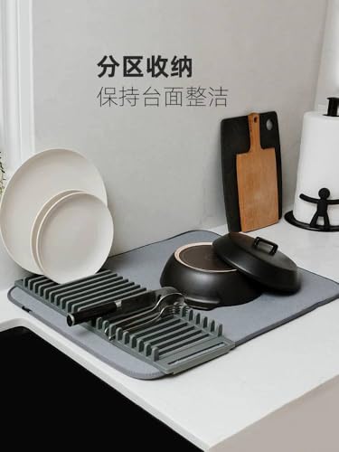 Generic - الدراينج مات – منشفة مواعين + مطبقية متكاملة – لتجفيف الأواني بسهولة ومنع فوضى المياه L