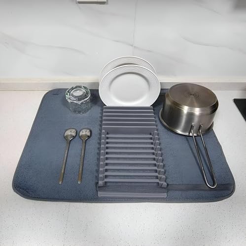 Generic - بساط تجفيف - بساط فوط مطبخ فائق الامتصاص للأطباق والأكواب مع قسم للرف، مثالي للتصريف السريع والتجفيف بعد الغسيل، يحافظ على أسطح الطاولات نظيفة ومنظمة للاستخدام اليومي