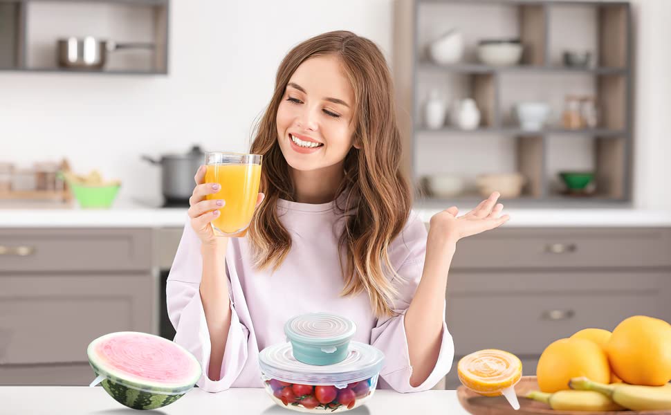 DS Living - أغطية سيليكون قابلة للتمدد وإعادة الاستخدام خالية من مادة بيسفينول أ تحافظ على الطعام طازجًا لفترة أطول من دي اس ليفينج، عبوة من 6 قطع بمقاسات مختلفة