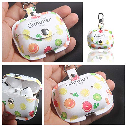 Dsigo - Dsigo Compatible with AirPods Leather Case Floral, Genuine Leather Floral Portable Protective Shockproof Cover Compatible for Apple AirPods 3 Charge Case Keychain - Fruit Flowers