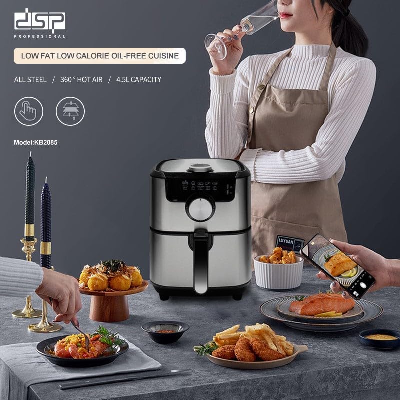 DSP - DSP Air Fryer 4.5 Liter Performance Range 1500 Watt Rapid Air Convection Heating, KB2085 Black*silver