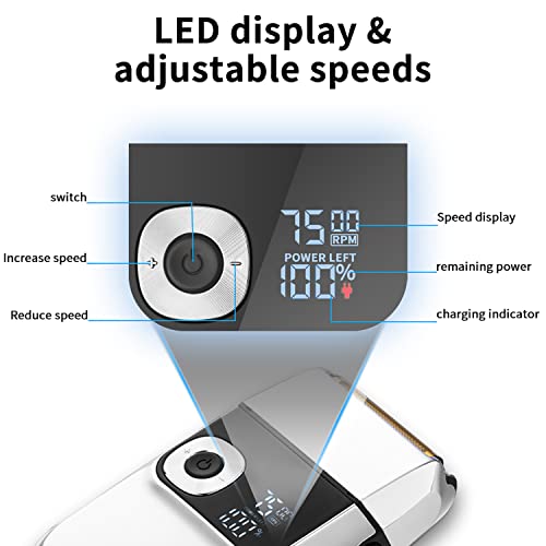 - 【3 سرعات قابلة للتعديل وشاشة ال اي دي】يتم عرض السرعة ومستوى الطاقة المتبقية بشكل مرئي وواضح من خلال شاشة ال اي دي. تتوفر ثلاث سرعات مختلفة قابلة للضبط وفقًا لكثافة وطول شعرك أو لحيتك. شاشة ال اي دي لعرض الطاقة والسرعة، تمنحك تجربة استخدام أكثر وضوحًا ودقة.