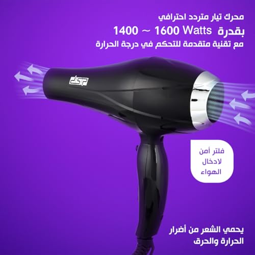 - أداء قوي: يوفر طاقة تتراوح بين 1400 - 1600 وات لتجفيف فعال وسريع.