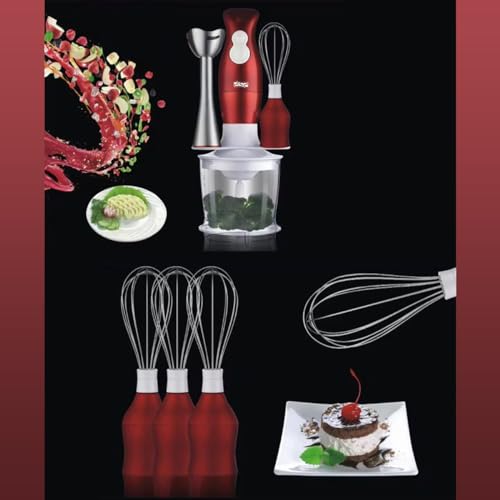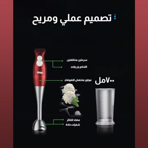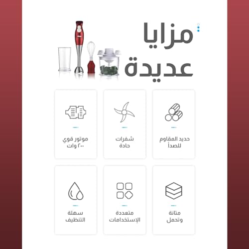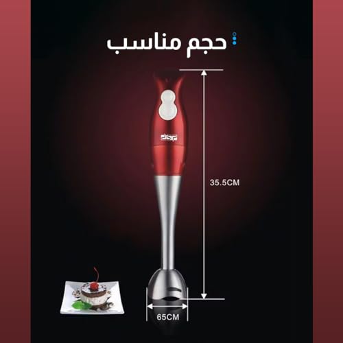 DSP - خلاط يدوي 4 في 1 من دي اس بي، محرك نحاسي كامل 200 وات | مفتاح لمس ناعم، تشغيل بسرعتين، شفرات من الستانلس ستيل | قطاعة 500 مل ومضرب ووعاء 700 مل متضمن KM1004 (أحمر)