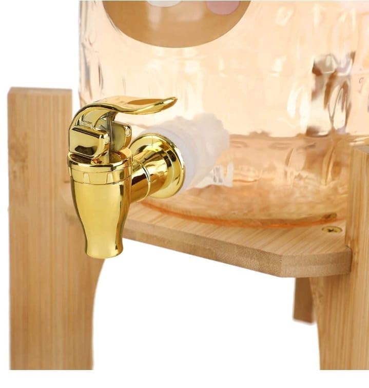 Generic - Dspencer Glass with Tap, Plus Wood Base, 3.2 Liter