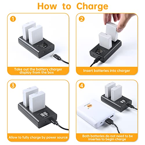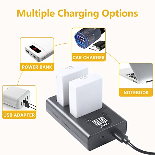 - The intelligent dual LCD charger allows you to charge 2 batteries simultaneously. The LCD screen shows the charging process of the individual batteries.