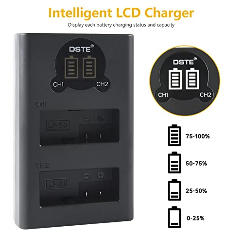 DSTE DE - DSTE LP-E8 Replacement Battery + Dual USB Charger with LCD Display Compatible with Canon EOS 550D, 600D, 650D, 700D, Kiss X4, Kiss X5, Kiss X6i, Kiss X7i, Rebel T2i, T3i, T4i, T5i Digital Camera, Pack