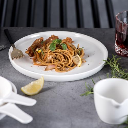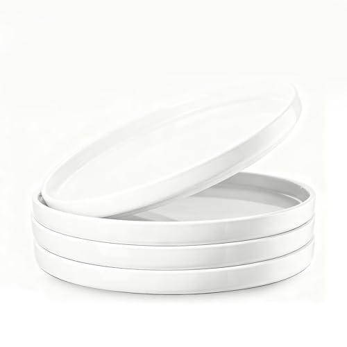 - MULTIPURPOSE This set of 4 round ceramic plates is a must have in any kitchen and are ideal for serving main dishes (steak, pasta, rice), appetizers, desserts, snacks (fruit, nuts, crackers), salads or breakfast dishes (eggs, toast). The 4-piece quantity is perfect for small families, get-togethers or preparing meals and meets all daily and entertaining requirements when serving food.