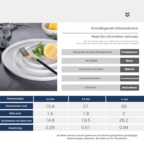 DSYZWEE - Set of 4 Dinner Plates, White Porcelain Dinner Plates, 9.2 Inches/22.5 cm Flat Ceramic Plates, Microwave, Oven and Dishwasher Safe for Salad, Dessert and Appetizer, Scratch-Resistant and