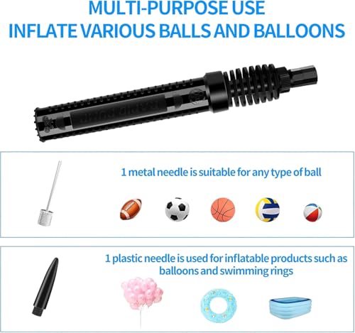 - 2️MULTIFUNCTIONAL FOR ALL TYPES OF BALLS: Ideal for inflating footballs, basketball, airplane, rugby, handball, as well as bikes, pool balloons and air games. Its versatile design makes it a must-have functional tool for every player, coach and family looking for a comprehensive and reliable solution to inflate all sporting tools with ease.