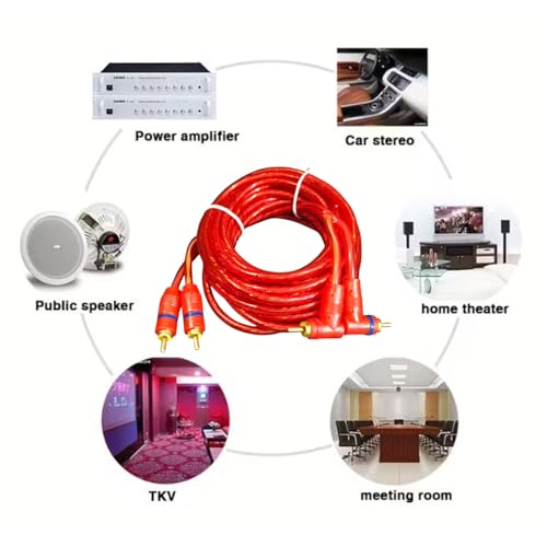 Generic - Dual Audio Cable, Stereo Audio Cable, Tangle-Free Design Rc 90 Degree Right Angle Red 4 Meter