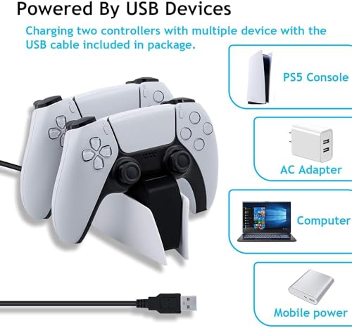 - Dual Charging: Powers two PS5 controllers at the same time Fast & Efficient: Quick charging with USB Type-C LED Indicators: Easily see charging status Compact Design: Saves space and fits next to your console