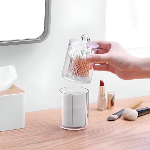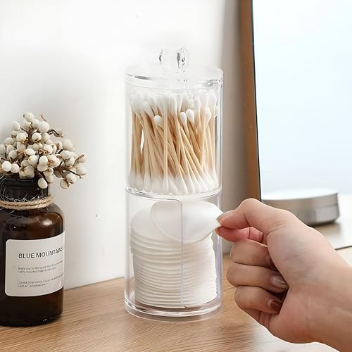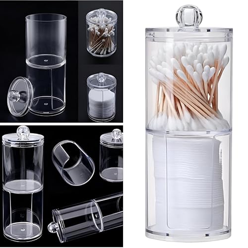 Generic - منظم قطني بمقصورتين - يحمل المسحات والوسادات واعواد الاسنان في برطمان حمام واحد قابل للتكديس