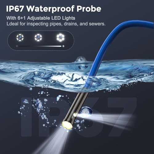 - 【مقاومة للماء والغبار بتصنيف IP67】 تتميز كاميرا التلسكوب هذه بمعيار مقاومة للماء IP67، وهي أداة ملائمة لمراقبة فحص السباكة والكائنات الموجودة في الماء وإصلاح السيارات وتنظيف المنزل. بالإضافة إلى ذلك، يمكن مراقبة الأماكن الضيقة مثل قنوات تصريف المياه والمحركات بدقة عالية (ملاحظة: صناديق الواي فاي ليست مقاومة للماء).