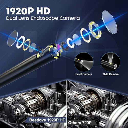 Beedove - كاميرا منظار صناعي عالي الدقة 1920P بعدستين، كاميرا فحص مزدوجة مع شاشة IPS مقاس 4.3 بوصة و7 أضواء ليد، مقاومة للماء، كاميرا على شكل ثعبان متوافقة مع الموبايلات الذكية وأجهزة التابلت (بطول 3.5 م)