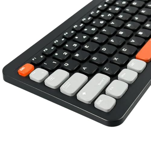 - قم بتوصيل ما يصل إلى 3 أجهزة -- يمكن للوحة المفاتيح اللاسلكية هذه التبديل بسرعة بين 3 أجهزة دون أي تداخل أو انفصال. لا حاجة لإعادة تشغيل عملية الاقتران (يتم تخزين مستقبل USB في الجزء الخلفي من الكيبورد).