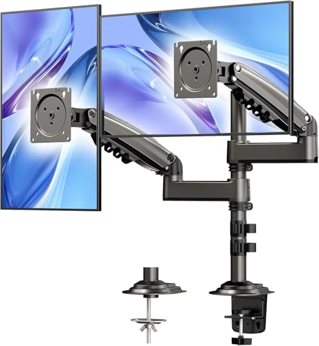 Generic - حامل شاشة مزدوج - حامل مكتب بارتفاع قابل للتعديل لشاشات 13-32 بوصة، قابل للامالة والدوران والدوران، يحمل حتى 9 كجم، فيسا 75x100