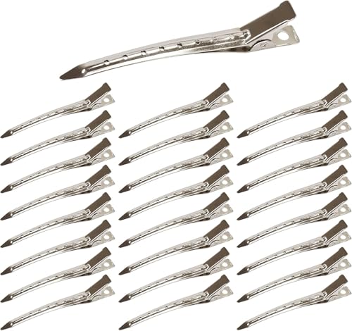 Lonimia - Duck Bill Hair Clips, 25 Pcs 3.5 Inch Rustproof Metal Alligator Curl Clips with Holes for Hair Styling, Hair Coloring, Thick Hair Sectioning, Salon, Bows DIY, Silver (25 Pcs, 3.5in Silver)