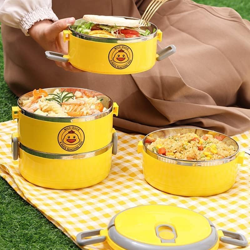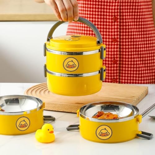 Generic - Duck Design 3-Tier Stainless Steel Lunch Box, Stackable Food Container Set with Handle, Yellow