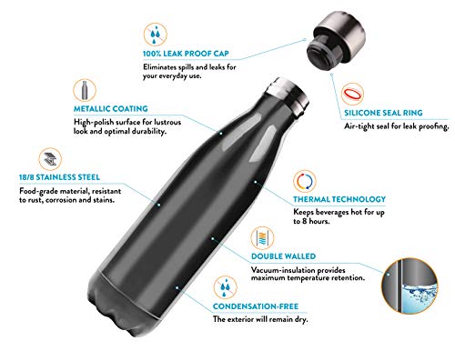 Duck House - زجاجة مياه معزولة من الفولاذ المقاوم للصدأ بعزل مزدوج الجدار محكم الغلق ومانعة للتسرب بلمسة نهائية معدنية وخالية من البيسفينول أ من دك هاوس، سعة 503 مل