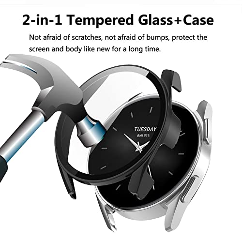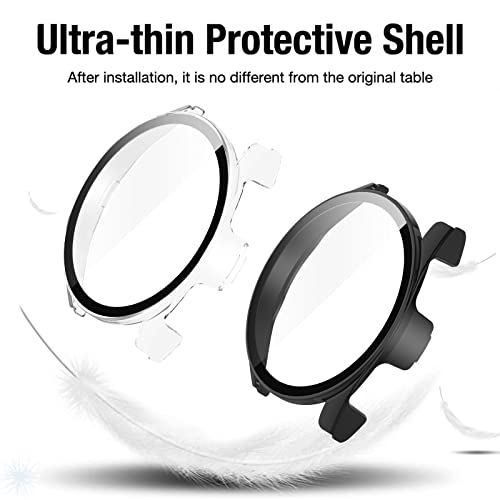 - Full protection: 2-in-1 hard plastic case with built-in ultra-thin clear glass screen protector. Made of high quality hard PC and shatterproof tempered glass, this case completely covers the entire front and curved edges of the watch, providing 360 degree protection for your watch against scratches, drops and bumps.