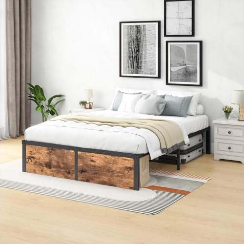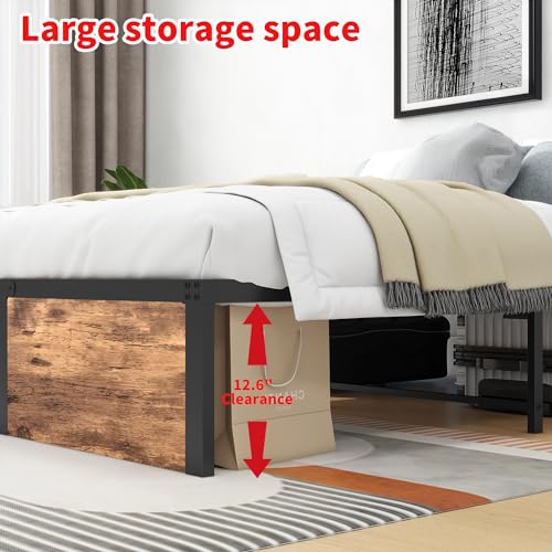 DUMEE - DUMEE King Size Bed Frame with Wooden Footboard Metal Bed frame King Bed with 32cm Under-Bed Storage, Enhanced Support Noise Free, No Box Spring Needed, Textured Black