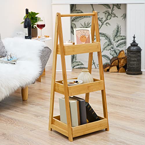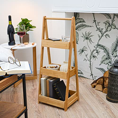 - 3 SPACIOUS BASKETS OF WOOD - Not only as an organizer between washbasin and toilet: also as a bookshelf, for deco, accessories, tools.... and toys! The compartments are approx. 12, 18 and 25 cm wide.