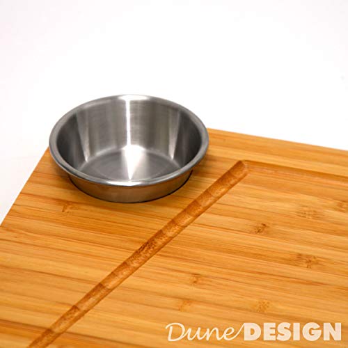 DuneDesign - DuneDesign 2 x Wooden Steak Plates with Dipping Bowls - 30 x 25 cm Bamboo Plate Set - Grill Serving Plate Wooden Board Kitchen Gastro Accessories Burger Tray Grill Accessories - Sushi Tableware Set 4
