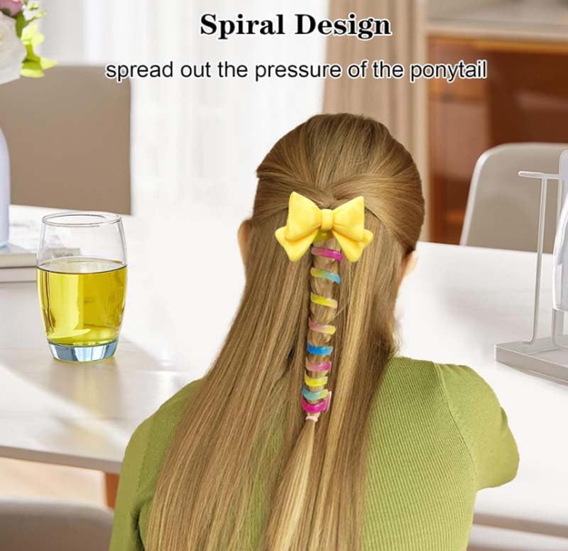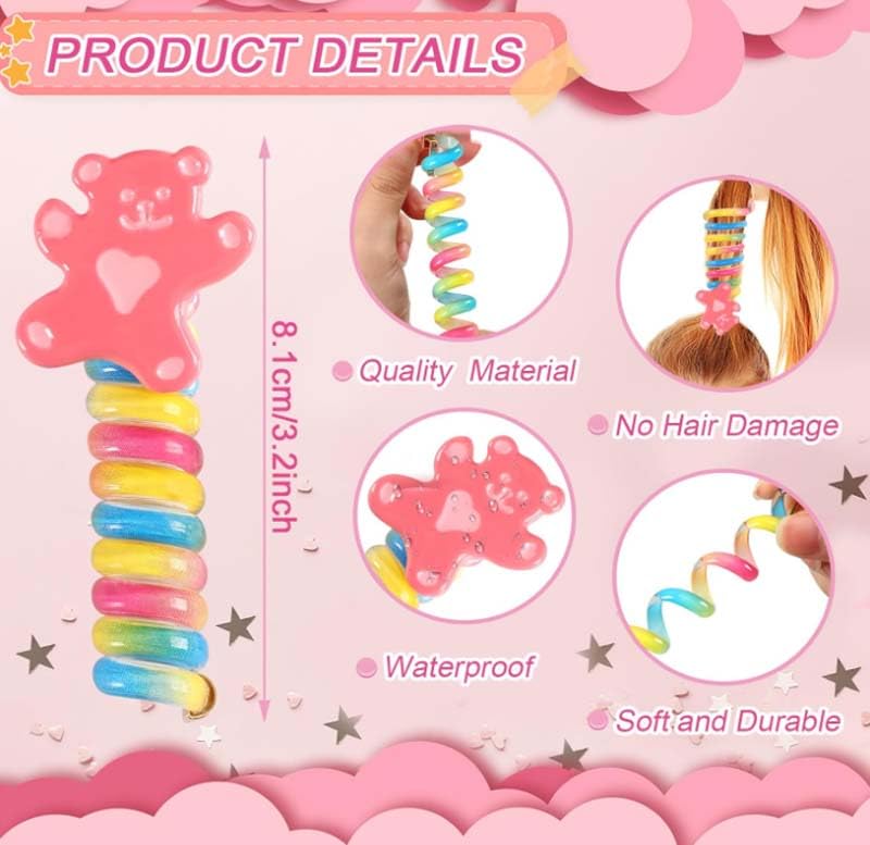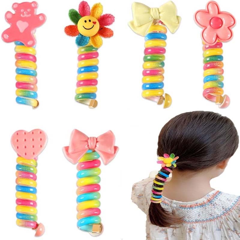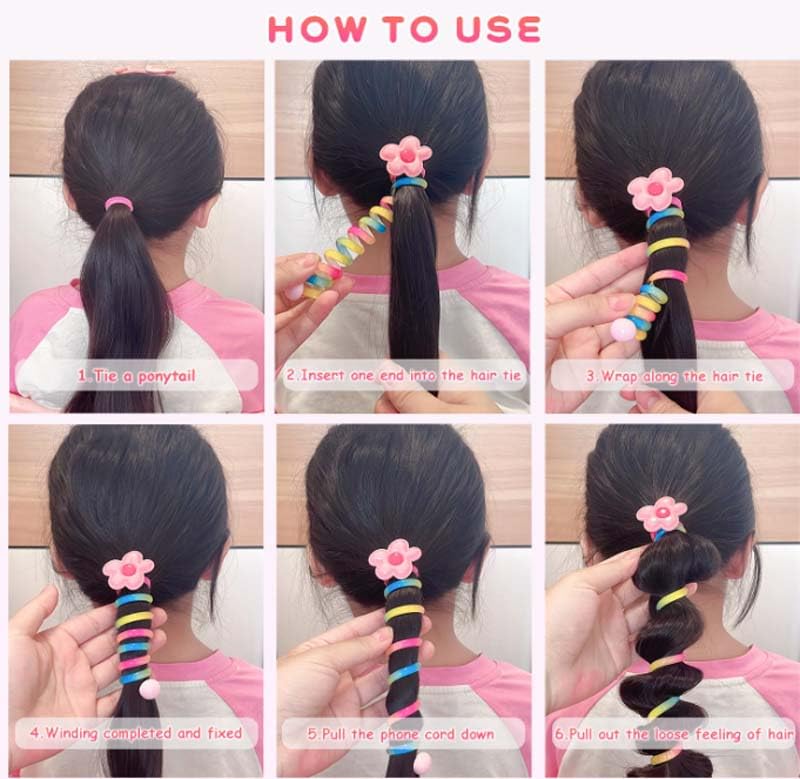 DUNQING - 6 pieces of children's colored telephone headbands, spiral tie braided telephone headbands, waterproof and wear-resistant ponytail stabilizer for teenagers,
